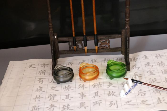 3. 成形,是将熔制好的琉璃液转变成具有固定形状的固体制品。成形必须在一定温度范围内才能进行,这是一个冷却过程,琉璃首先由粘性液态转变为可塑态,再转变成脆性固态。 因为人工成形劳动强度大,温度高,条件差,所以,除自由成形外,大部分已被机械成形所取代。机械成形除了压制、吹制、拉制外,还有(1)压延法,用来生产厚的平板琉璃、刻花琉璃、夹金属丝琉璃等。(2)浇铸法,生产光学琉璃。(3)离心浇铸法,用于制造大直径的琉璃管、器皿和大容量的反应锅。这是将琉璃熔体注入高速旋转的模子中,由于离心力使琉璃紧贴到模子壁上,旋转继续进行直到琉璃硬化为止。(4)烧结法,用于生产泡沫琉璃。它是在玻璃粉末中加入发泡剂,在有盖的金属模具中加热,玻璃在加热过程中形成很多闭口气泡这是一种很好的绝热、隔音材料。此外,平板琉璃的成形有垂直引上法、平拉法和浮法。浮法是让琉璃液流漂浮在熔融金属(锡)表面上形成平板琉璃的方法,其主要优点是玻璃质量高(平整、光洁),拉引速度快,产量大 。